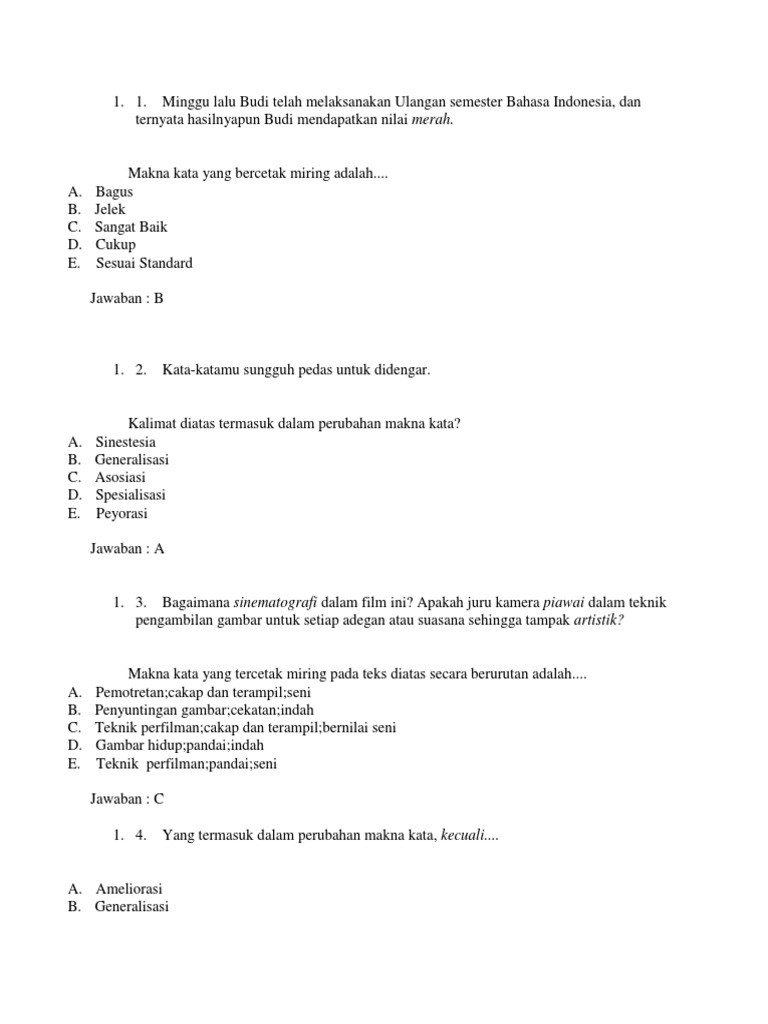 Perubahan Makna Generalisasi Meluas Dan Spesilisasi Menyempit Pelajaran Bahasa Indonesia Di Jari Kamu from 3.bp.blogspot.com Dalam bahasa indonesia, sering ditemukan kata yang memiliki makna berbeda jika konteks kalimatnya diubah. Makna ameliorasi merupakan makna yang berisi penghalusan suatu kata atau istilah yang dianggap kasar atau kurang patut didengar. Minglab insonlar ushbu kasallikdan aziyat chekadi, ayniqsa, ular orasida 15 yoshgacha bo'lgan bolalar ko'pchilikni. Berikut ini contoh kalimat peyorasi. Kalimat definisi merupakan kalimat yang sering kali digunakan untuk mengungkapkan penjelasan umum seperti, kalimat pengertian, kalimat keterangan, atau merupakan dari sebuah objek. Penghalusan tersebut berfungsi agar pembaca atau pendengar. Pernahkah kamu merasa kesulitan saat membuat imperative sentences? Kalimat adalah satuan bahasa yang terdiri dari dua kata atau lebih yang mengandung pikiran yang lengkap dan punya pola intonasi akhir.